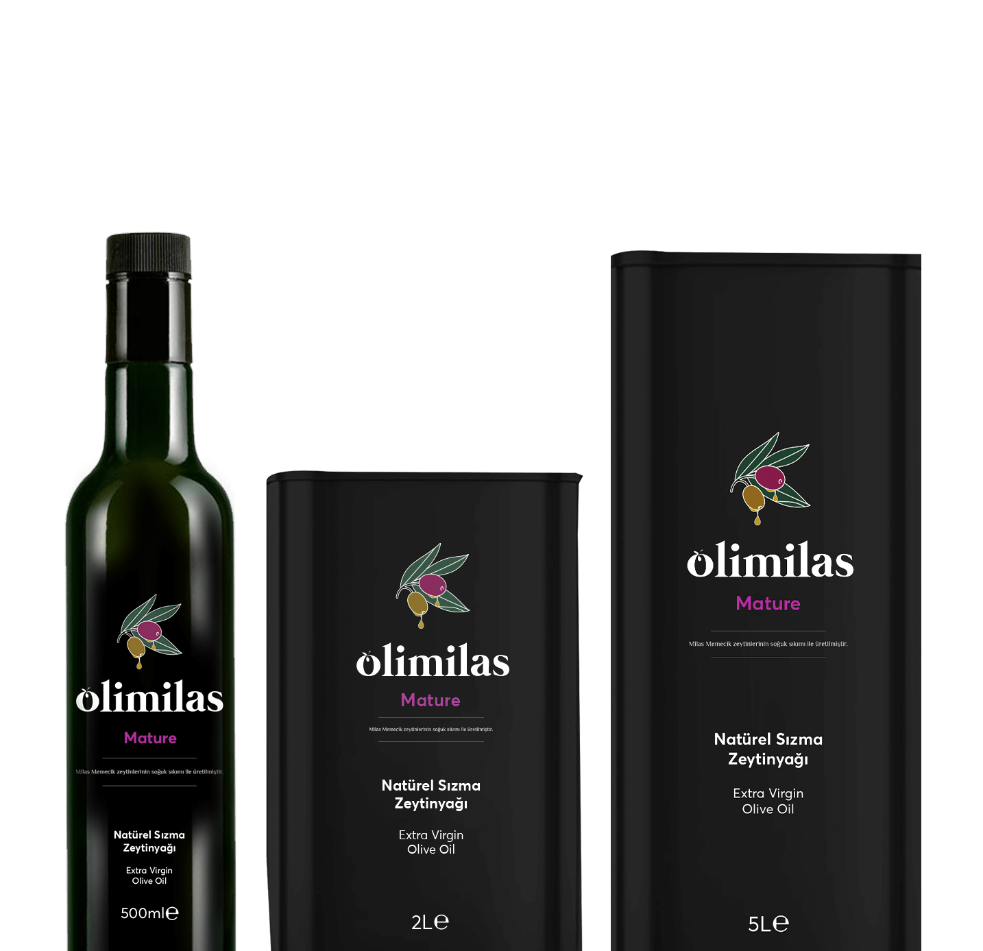 Olimilas olarak biz sadece soğuk sıkım yapıyoruz ve yalnız Milas'taki zeytinliklerimizin zeytin meyvelerini kullanıyoruz. Coğrafi işaretli zeytinyağımızı erken hasat Premium (zeytinler henüz yeşilken, ilk hasat zamanında), erken hasat Dress (zeytinler yeşilden mora dönmeye başladığında) ve olgun hasat Mature (zeytinler mordan siyaha döndüğünde) olmak üzere üç kategoride, aynı sıkı ve hassas üretim aşamalarından geçirerek ürettik.